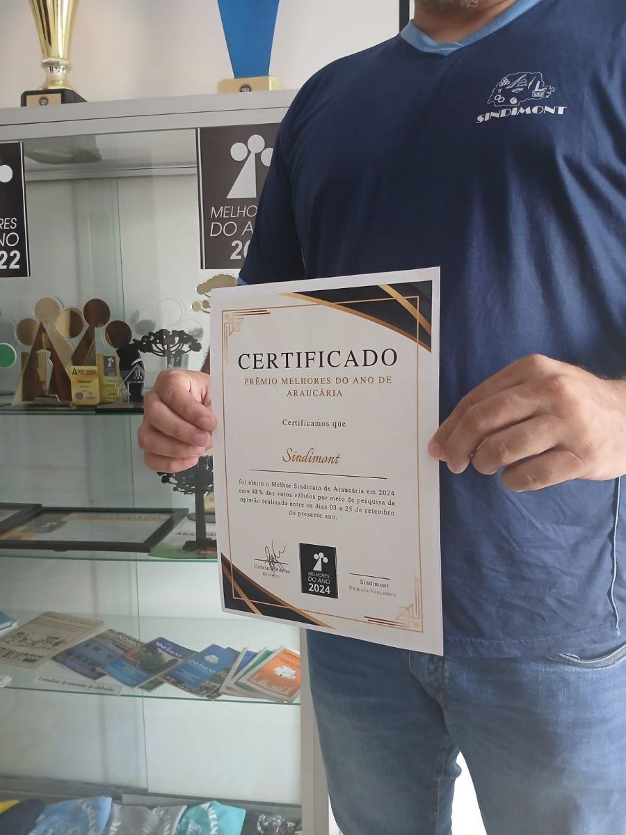É com grande orgulho que anunciamos que o Sindimont foi eleito, mais uma vez, o Melhor Sindicato de Araucária em 2024! O prêmio, conquistado com 48% dos votos da população, é um reconhecimento do trabalho contínuo que desenvolvemos em defesa dos trabalhadores e de seus direitos.